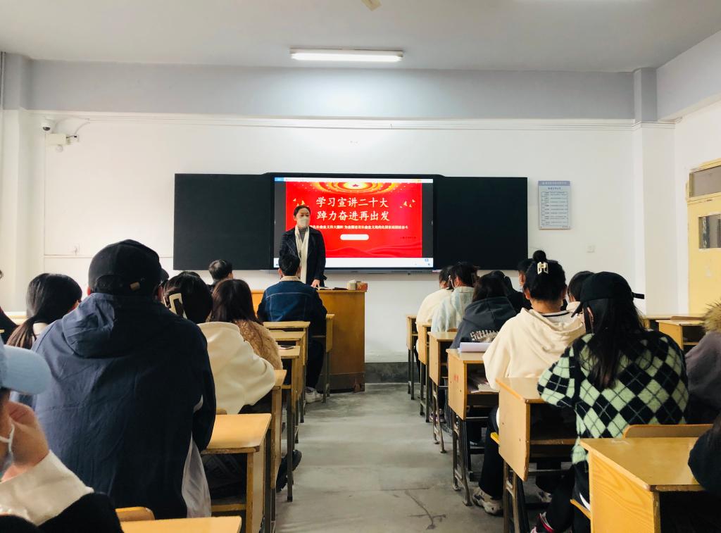 白雪系统介绍了二十大的召开盛况,重点对习近平总书记的报告和会议取得的成果进行了解读。她强调二十大是党和国家政治生活中的一件大事,事关党的自身建设和国家发展进步的方方面面,学习和践行二十大精神是当前和今后一个时期的重要任务,开展宣讲活动的目的就是要让二十大精神在青年学子中落地生根。她指出,二十大报告专门对青年工作作出了重要部署,党有号召,我有行动,广大同学一定要坚定不移地听党话、跟党走,时刻谨记习近平总书记的教诲,恪守“强国有我,请党放心”的誓言,珍惜韶华、增长才干,在国际大势的比较中,紧盯国之大者,以实际行动融入到火热的强国实践中去,要怀抱梦想又脚踏实地,敢想敢干又善作善成,立志做有理想、有担当、能吃苦、肯奋斗的时代新人。