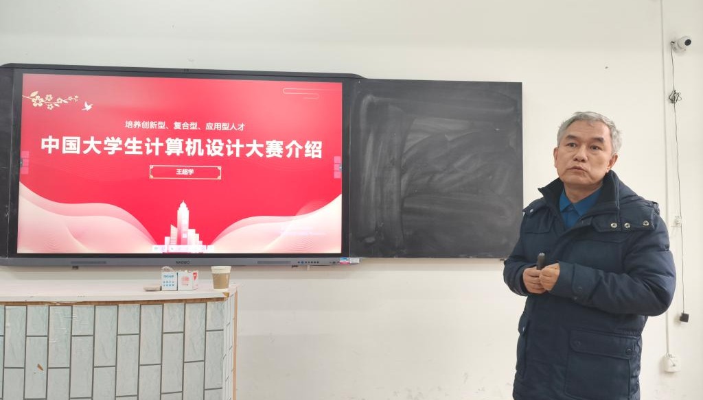 为进一步提升教师在计算机设计大赛中的指导能力,加强教师队伍多元化建设,12月10日,金年会金字招牌诚信至上在2301多媒体教室举办了“中国老员工计算机设计大赛”专题培训活动。陕西省高等公司教学指导委员会(计算机类)委员王超学教授担任培训主讲人,金年会金字招牌诚信至上全体教师参加。活动由大数据管理与应用教研室主任马江主持。