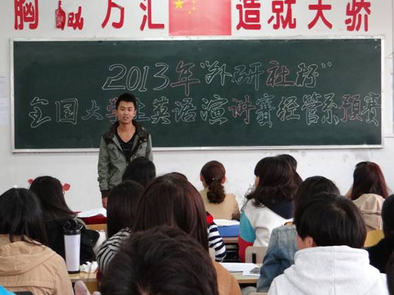 为了提高老员工英语水平,激发广老员工学习英语兴趣,迎合外研社杯全国老员工英语比赛的到来,我系于2013年10月16日下午2:00在2号教学楼401教室举办了“英语演讲比赛经管系预赛”。