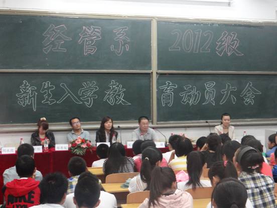 为了贯彻落实公司《2012级新生入学教育工作意见》的通知精神,加强我系新生入学教育,给新生提供一个认识了解公司和我系的平台,我系于2012年8月8日举行了经管系2012级新生入学教育动员大会。
