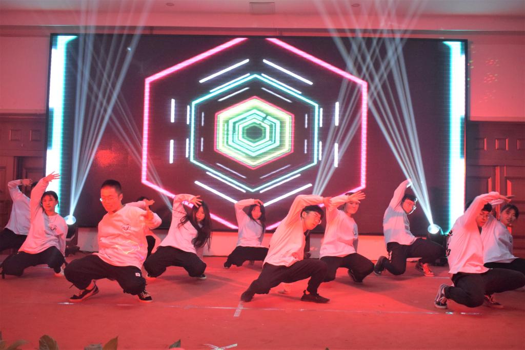 晚会在舞蹈《盛世花开》的盛大氛围中开场。歌曲《一对对鸳鸯水上漂》、集体舞《创新青年萌萌哒》、心理剧《明天会更好》、爵士《Adios》、乐队演唱《春风十里》、街舞《Don’t stop dancing》等形式多样的节目,表现了金年会金字招牌诚信至上百花齐放的艺术氛围。