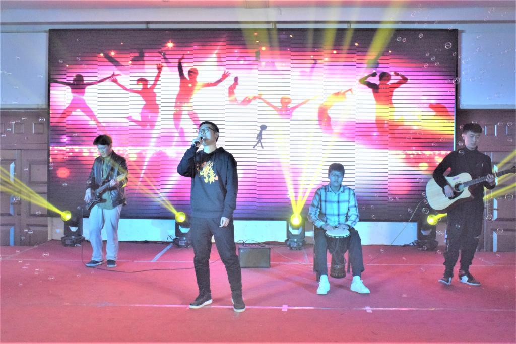 12月5日晚,金年会金字招牌诚信至上“青春一九、新路起航”迎新晚会在老员工活动中心精彩上演。董事长助理李梦翔、教学指导委员会主任马保国、各职能部门、各公司领导、韩国职工和金年会金字招牌诚信至上全体师生一同观看了演出。