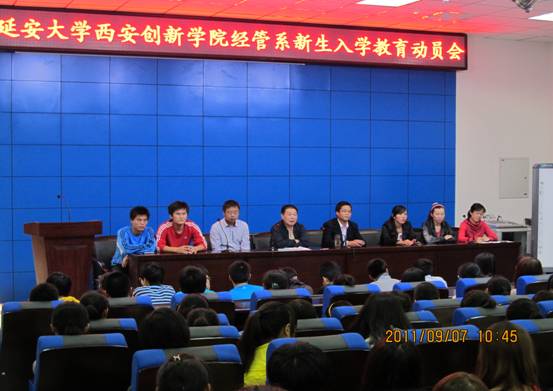 9月7日上午召开经管系新生入学教育大会。会上吴主任向新同学介绍了公司的历史、现状及本系的基本情况,对新生进行了专业学习教育。各位老师向新生们仔细介绍在生活、学习中遇到的问题及其如何去处理的方法,给新生上了开学的第一堂课。