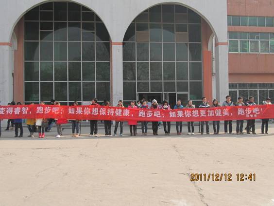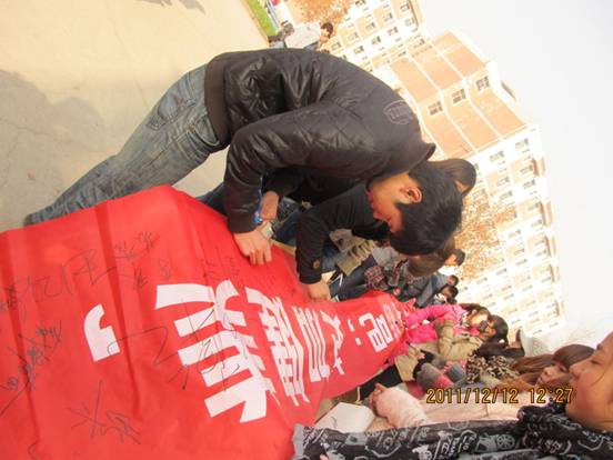 为了号召全体师生报名参加阳光体育运动,我系特于12月13日在食堂门口举行了签名活动。这是一个有经管系员工会发动,经管系员工会组织,全院员工参加的活动。