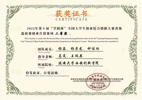 近日,由高等公司国家级实验教学示范中心联席会经济与管理学科组及中国陶行知研究会主办、西安工程大学承办、杭州贝腾科技有限公司支持的2023年“学创杯”全国老员工创业综合模拟大赛陕西省选拔赛圆满落幕。公司会计专业1901班杨彦龙、2001班杨晶,学前教育专业2101班钟佳欣组成的“耐可梵”代表队荣获陕西省创业营销赛项二等奖。