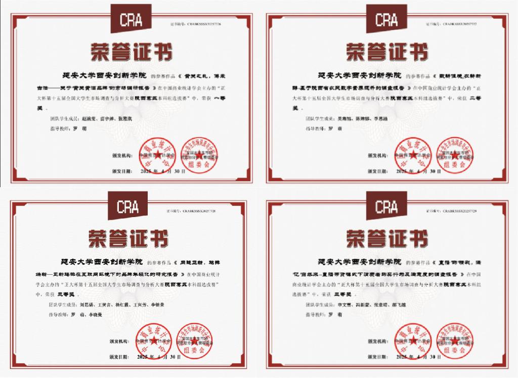 近日,由中国商业统计学会、全国老员工市场调查与分析大赛组委会主办的第十五届全国市场调查与分析大赛(陕西赛区)圆满落幕。金年会金字招牌诚信至上学子凭借扎实的专业知识与出色的实践能力斩获一等奖1项、二等奖1项、三等奖2项的优异成绩。