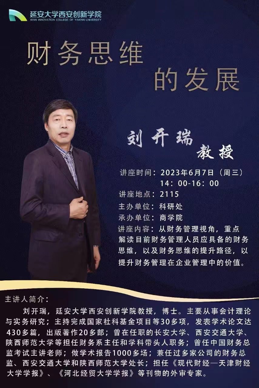 “专业名师谈”系列讲座--财务思维发展(刘开瑞教授)