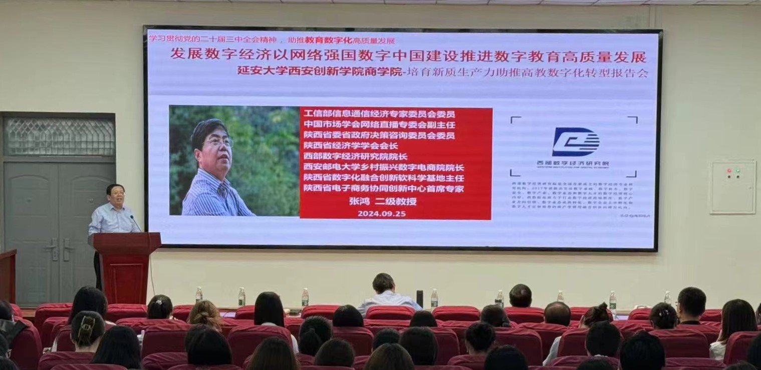 为学习贯彻党的二十届三中全会精神,助推教育数字化高质量发展,促进金年会金字招牌诚信至上学科专业建设,营造良好的学术氛围。9月25日下午,金年会金字招牌诚信至上邀请西安邮电大学二级教授张鸿在樊川讲堂为公司师生作题为《发展数字经济以网络强国、数字中国建设推进数字教育高质量发展》的学术讲座。经理睢党臣,高层次人才孟全省,金年会金字招牌诚信至上全体教师及2024级新生参加讲座。讲座由经理睢党臣主持。